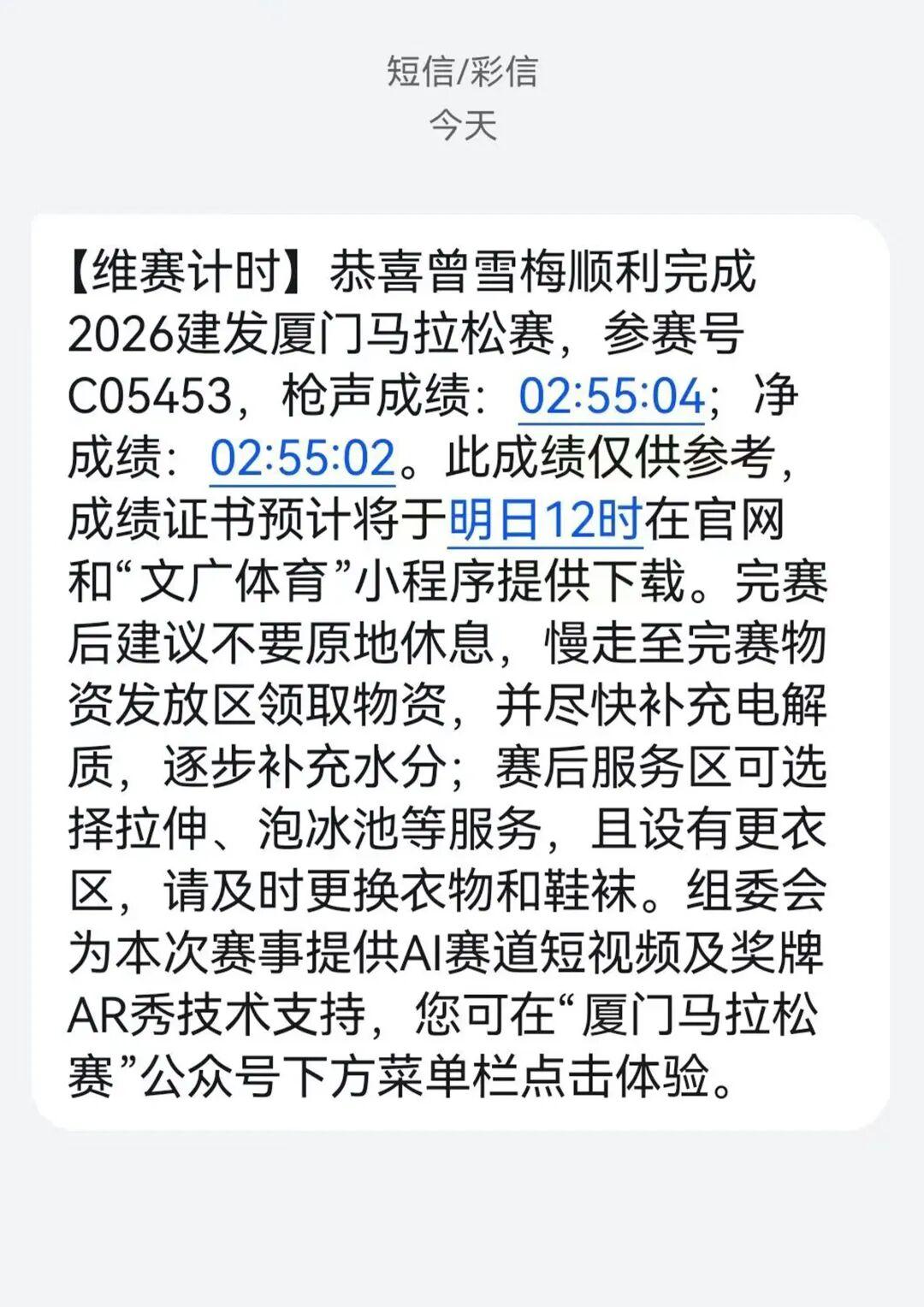 尽管吃得很少,但她跑得不慢。2024年的广州马拉松,那是她的首马,她跑了3小时06分。紧接着无锡马拉松3小时07分。到了25年底的深圳马拉松,她跑出了2小时51分59秒,第一次破三。